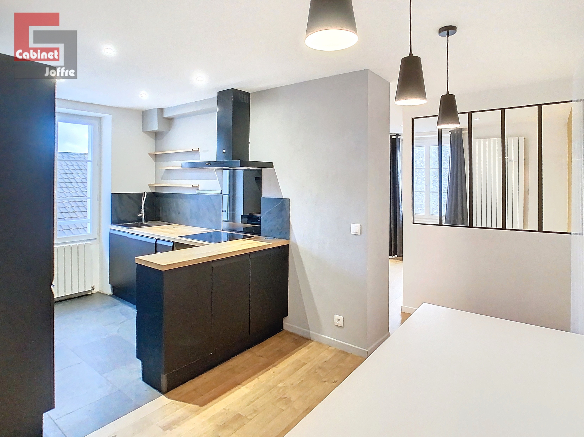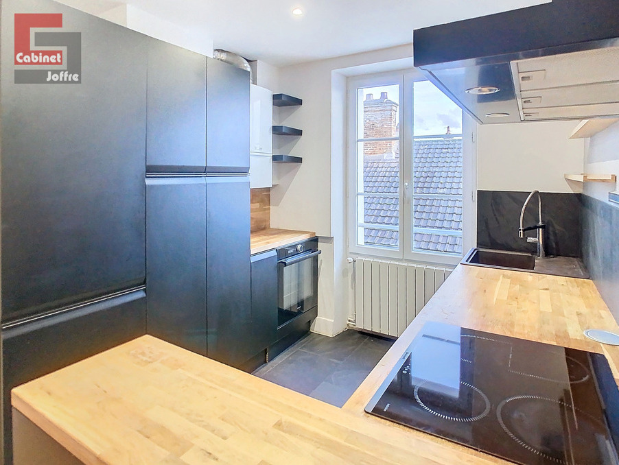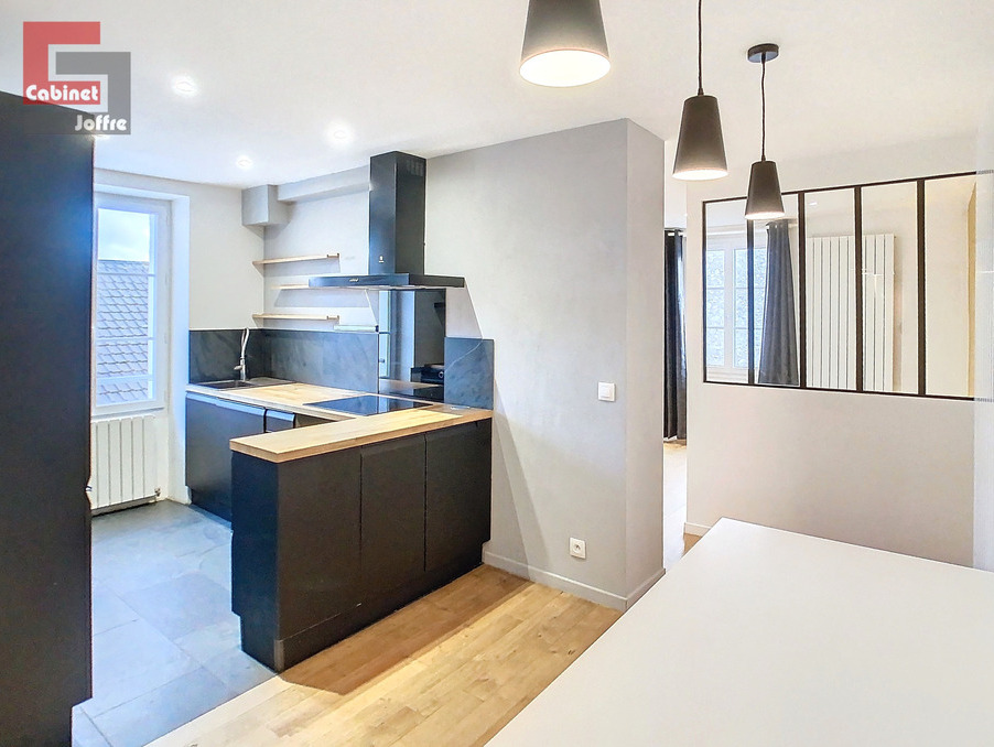 FONTAINEBLEAU - proche Place de l'Etape : à proximité des commerces et bus, au 2ème étage d'un immeuble ancien donnant sur cour au calme, bien exposé, un appartement de 3 pièces d'environ 67m2, atypique, comprenant : entrée sur séjour, cuisine ouverte meublée et semi-équipée, coin nuit ouvert (chambre attenante non-close) avec salle d'eau (douche à l'Italienne), dégagement avec rangements, seconde chambre spacieuse (18m2), salle d'eau et wc séparés. Chauffage individuel gaz. Loué avec une cave. DISPONIBLE MI-MARS 2026