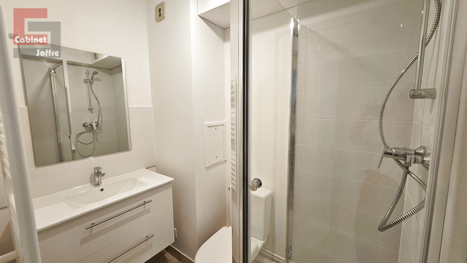 L'appartement se compose comme suit : Entrée, placard, cuisine meublée et équipée, avec une ouverture sur un grand séjour-salon. Un balcon exposition sud-ouest. Une salle de bains avec wc. Une très grande chambre de 19m² avec balcon exposition nord-ouest. Une salle d'eau avec toilettes, et un espace buanderie. Une cave et un garage en sous-sol. CHAUFFAGE INDIVIDUEL ELECTRIQUE.