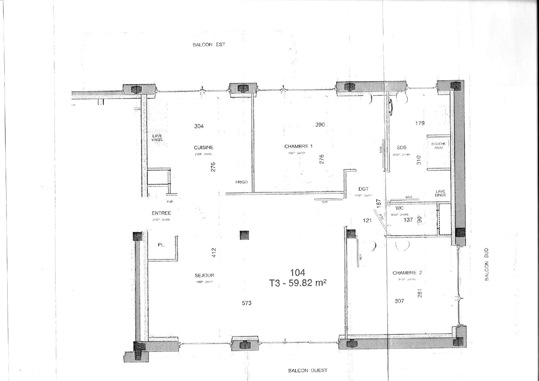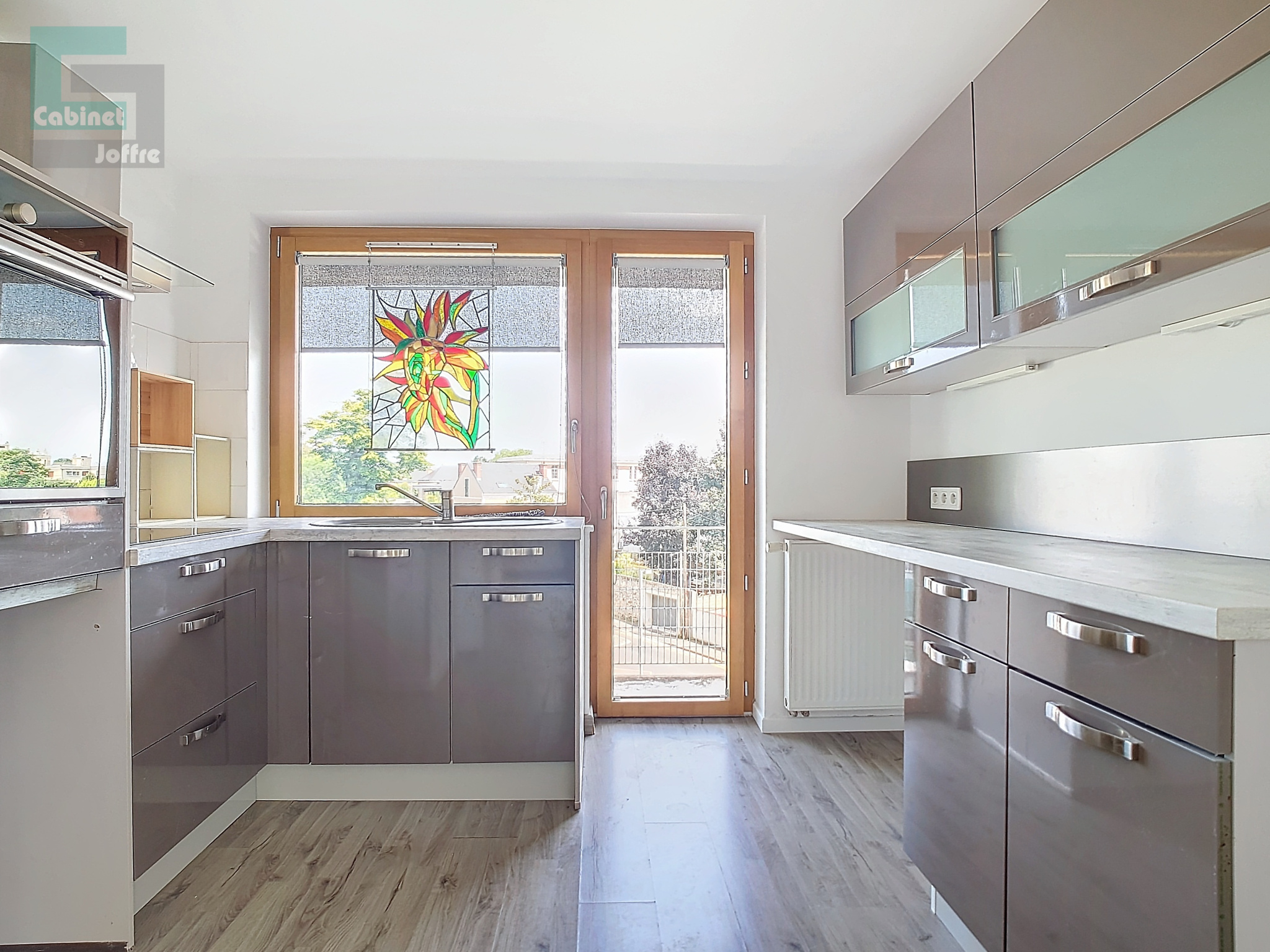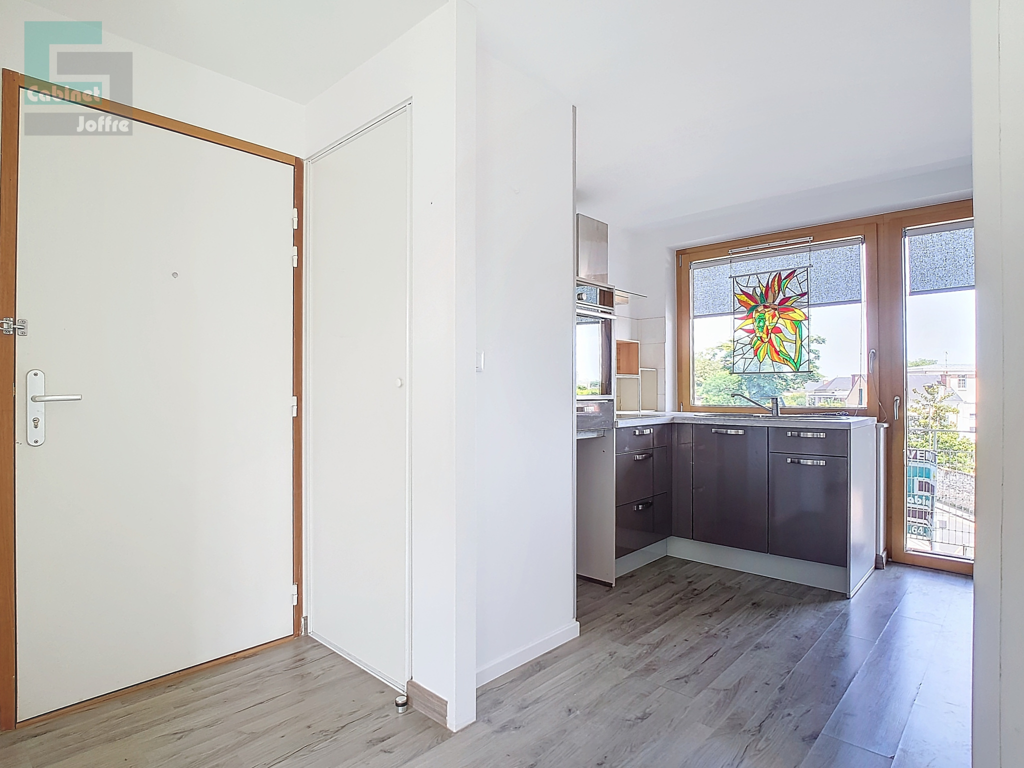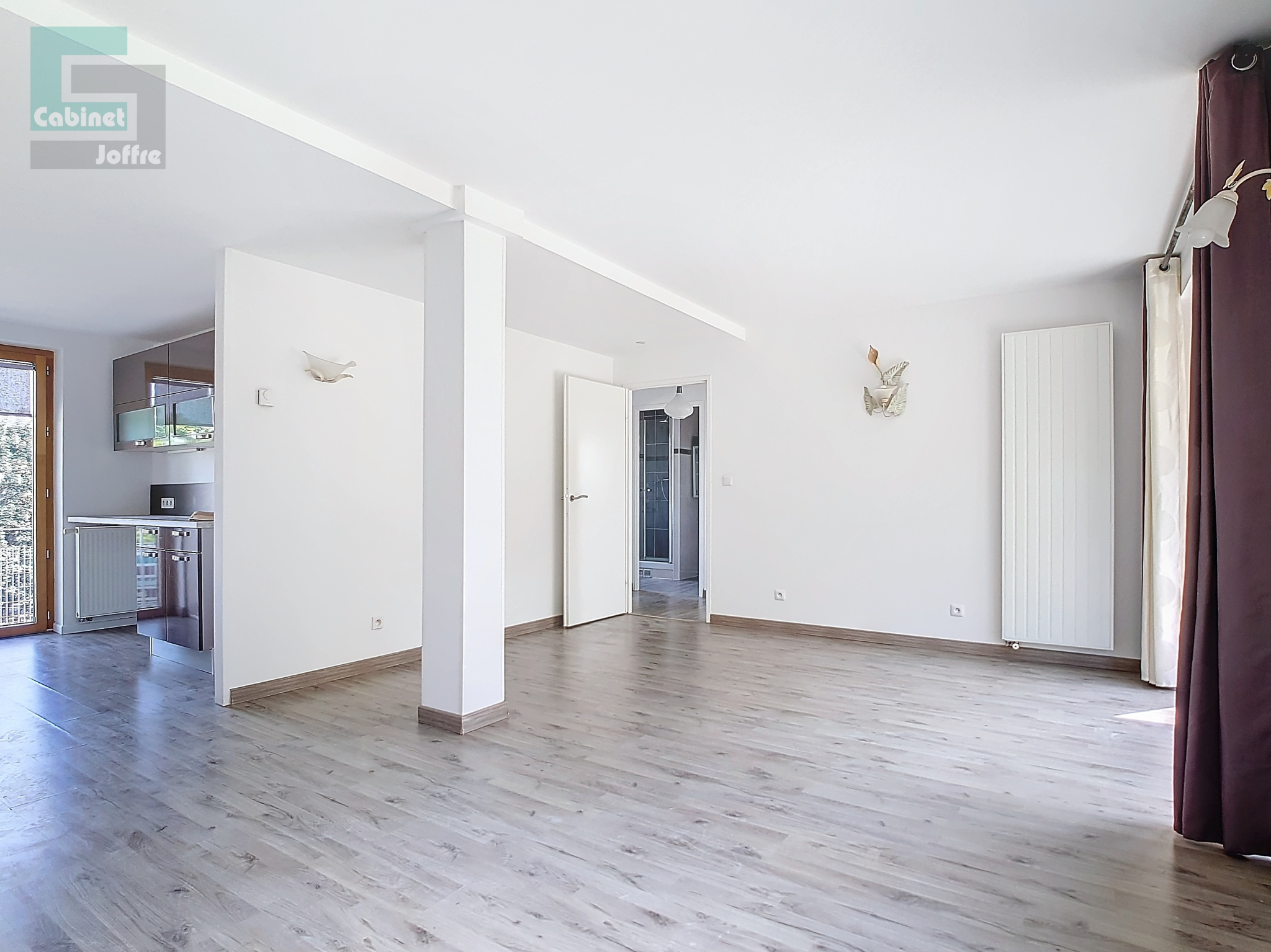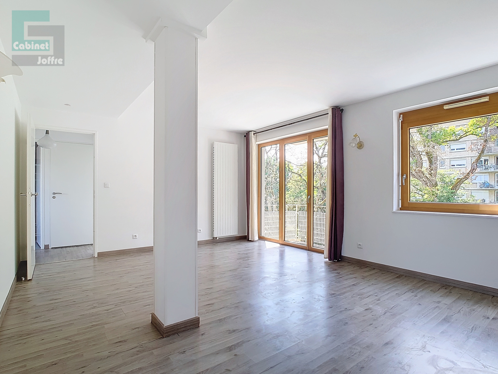 Il comprend : entrée, salon avec grand balcon, cuisine avec grand balcon, WC séparés, deux chambres, salle d'eau. Triple exposition. Très bon état et très bonne isolation.